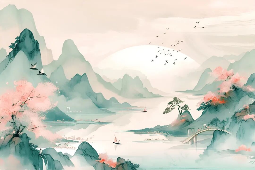 山水画作为中国传统文化的瑰宝,其寓意深远。水代表财源,山代表靠山,意味着财源广进、事业有靠。山水画挂在床头,不仅可以美化卧室环境,还能带来良好的风水运势。