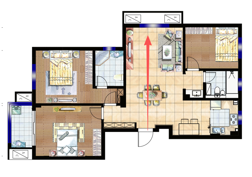 这种格局气流直进直出,从大门进入后未经回旋便直接从后门或窗户泄出,无法形成聚气效应。长期居住,家人心思浮动,缺乏安定感,人际关系容易出现裂痕。犯穿堂煞的家庭,往往成员各奔东西、难以凝聚。