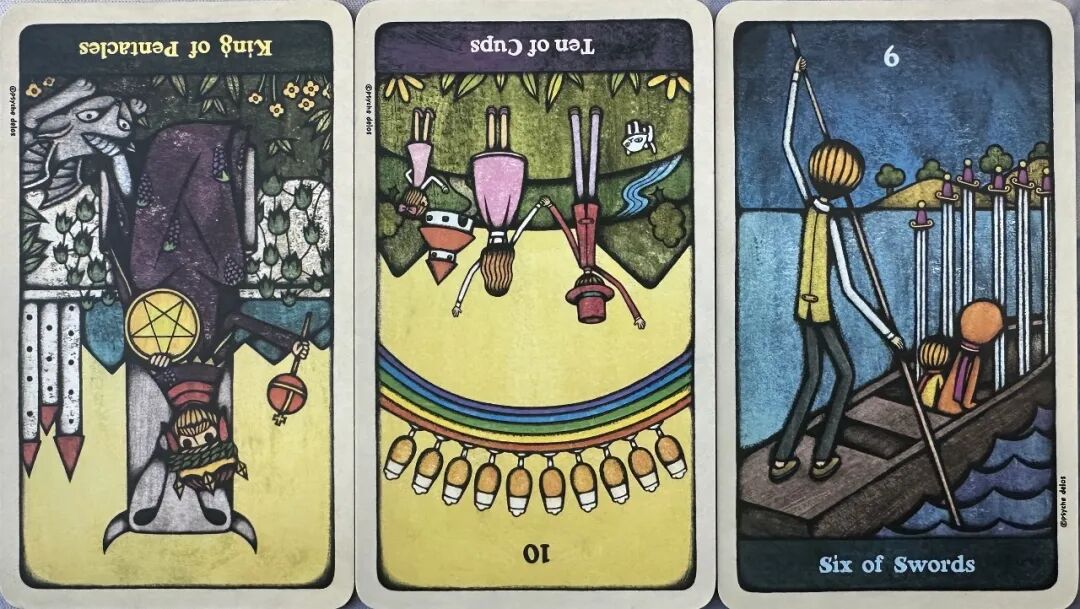 牌:星币皇帝- 圣杯十- 宝剑六+