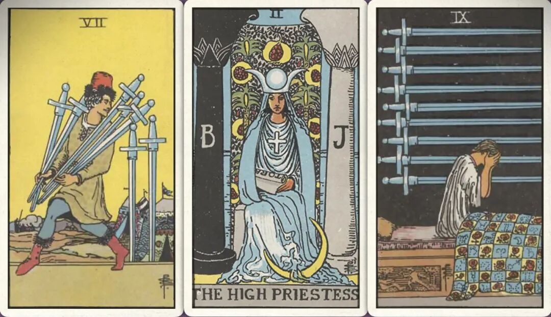 上半年:宝剑七+ 女祭司+ 宝剑九+
