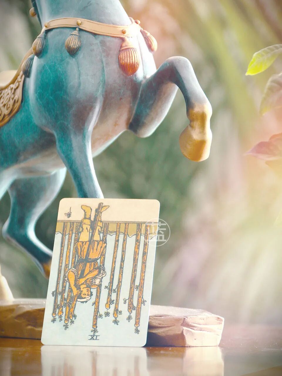 权杖9具有安静的力量,呈现出一种防御的状态,比如戒心、防备心变强。但逆位时则暗示着你内心的溃败,比如之前发生的某些事情你可能还是无法面对,或者某些内心的关卡你还是迈不过去。而从另一方面来说,这种溃败状态,也可能是你目前正面临着某些事情,可能有点快要撑不下去了。