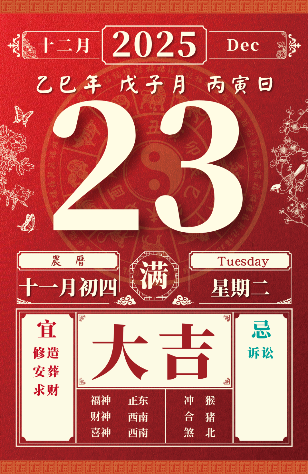 旺运方位:此日利于朝东方出行;西北方不宜。