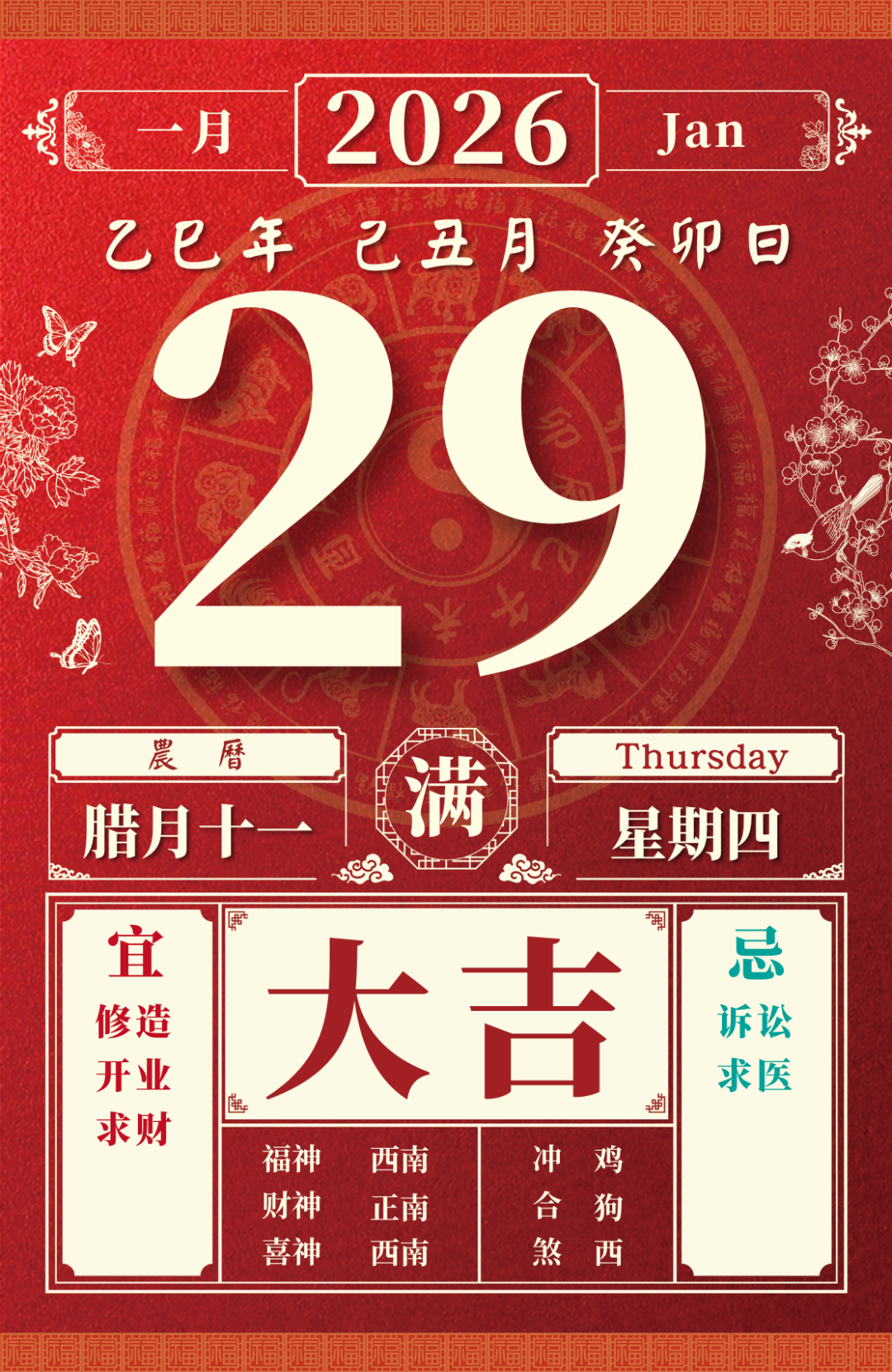 旺运方位:此日利于朝西方出行;东北方不宜。