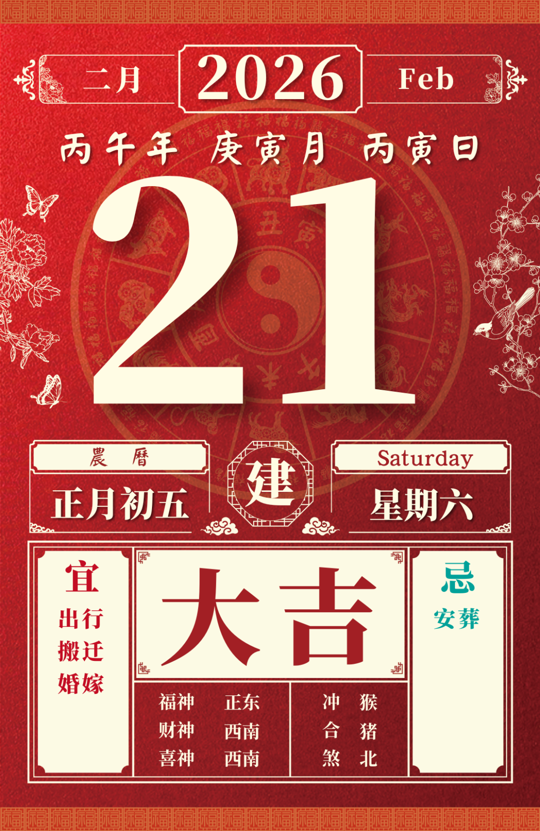 旺运方位:此日利于朝东方出行;西北方不宜。