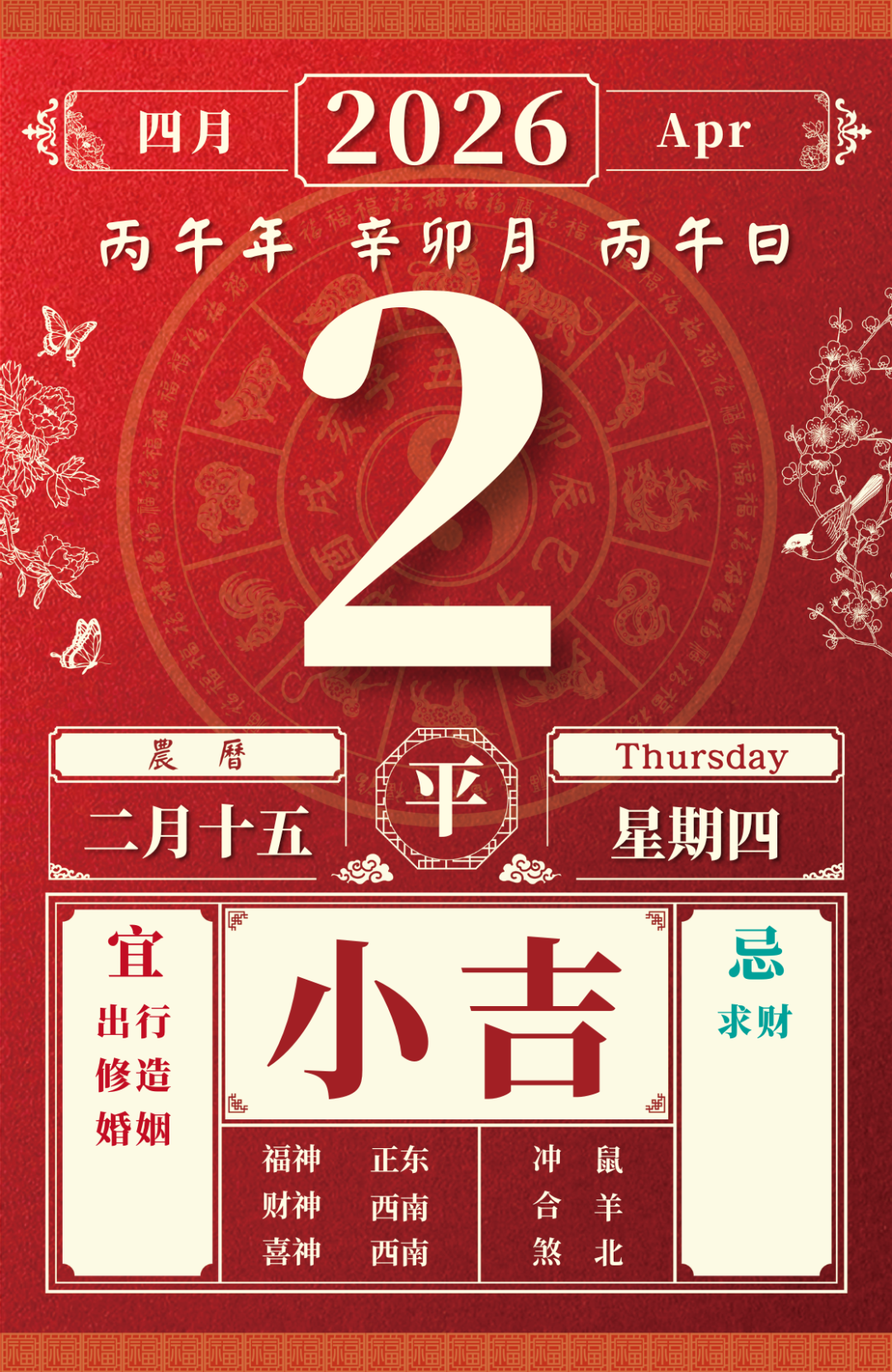旺运方位:此日利于东方出行;西北方不宜。