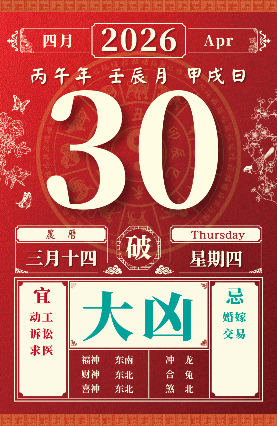 旺运方位:此日利于朝南方出行;东北方不宜。