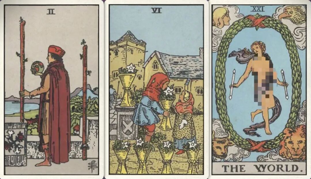 牌:权杖二+ 圣杯六+ 世界+