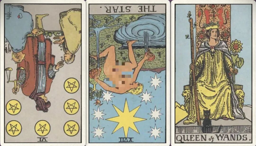 牌:星币六- 星星- 权杖皇后+