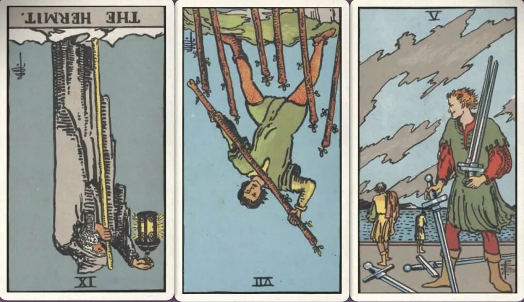 牌:隐士- 权杖七- 宝剑五+