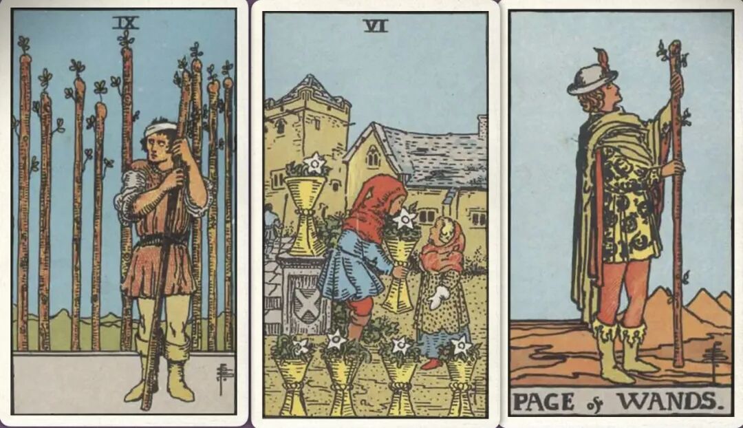 牌:权杖九+ 圣杯六+ 权杖侍从+