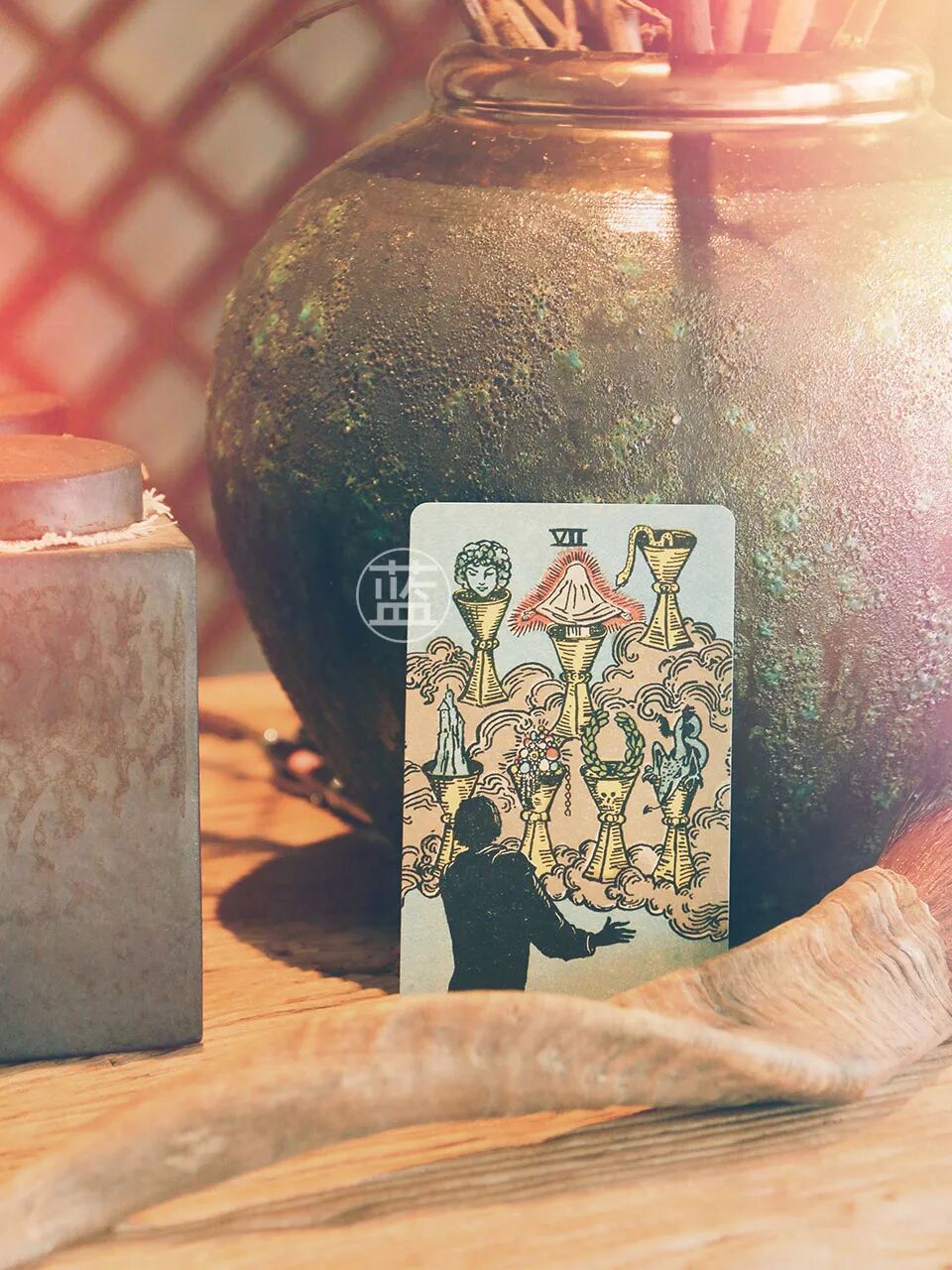 圣杯7是一张象征着梦境的牌,但就如同梦境一样,它暗示着虚妄的欲望或幻想,同时它也强调着必要的选择。本周你容易陷入一种白日梦的状态,可能会对于感情有很多的幻想,甚至容易想入非非。但你也要明白,这些幻想其实也反映出你内心的某些欲望,可能并不切实际。