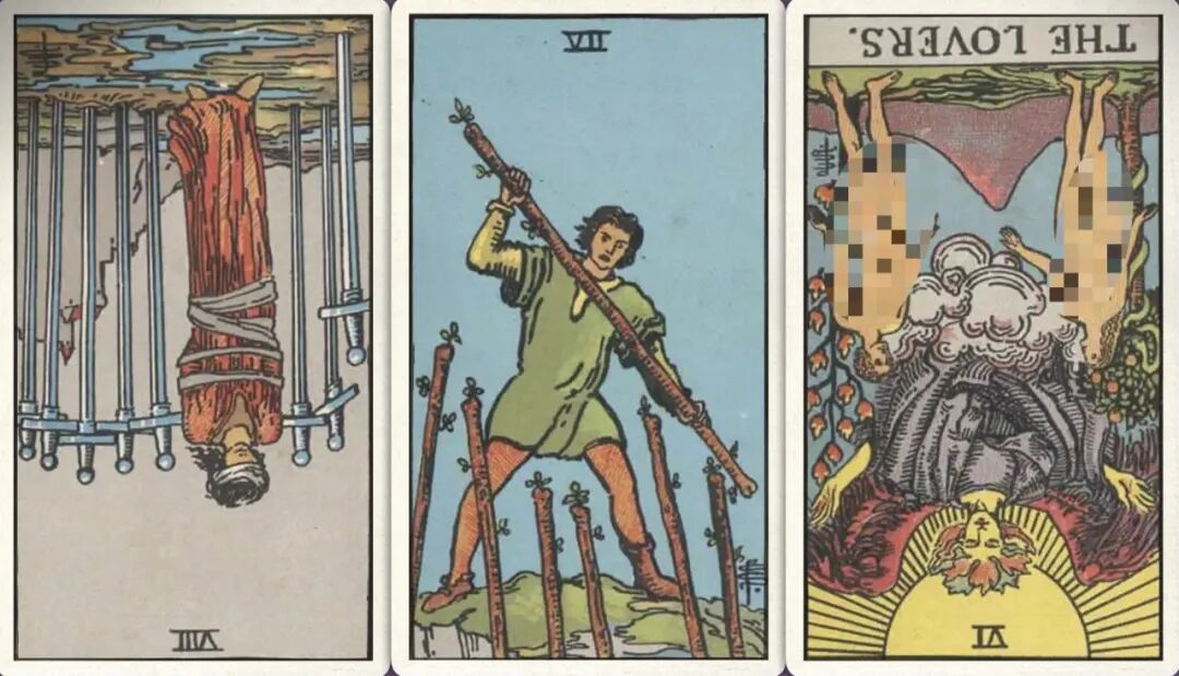 牌:宝剑八- 权杖七+ 恋人-