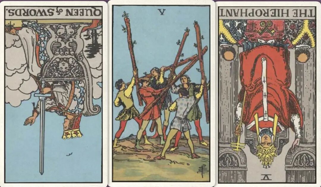 牌:宝剑皇后- 权杖五+ 教皇-