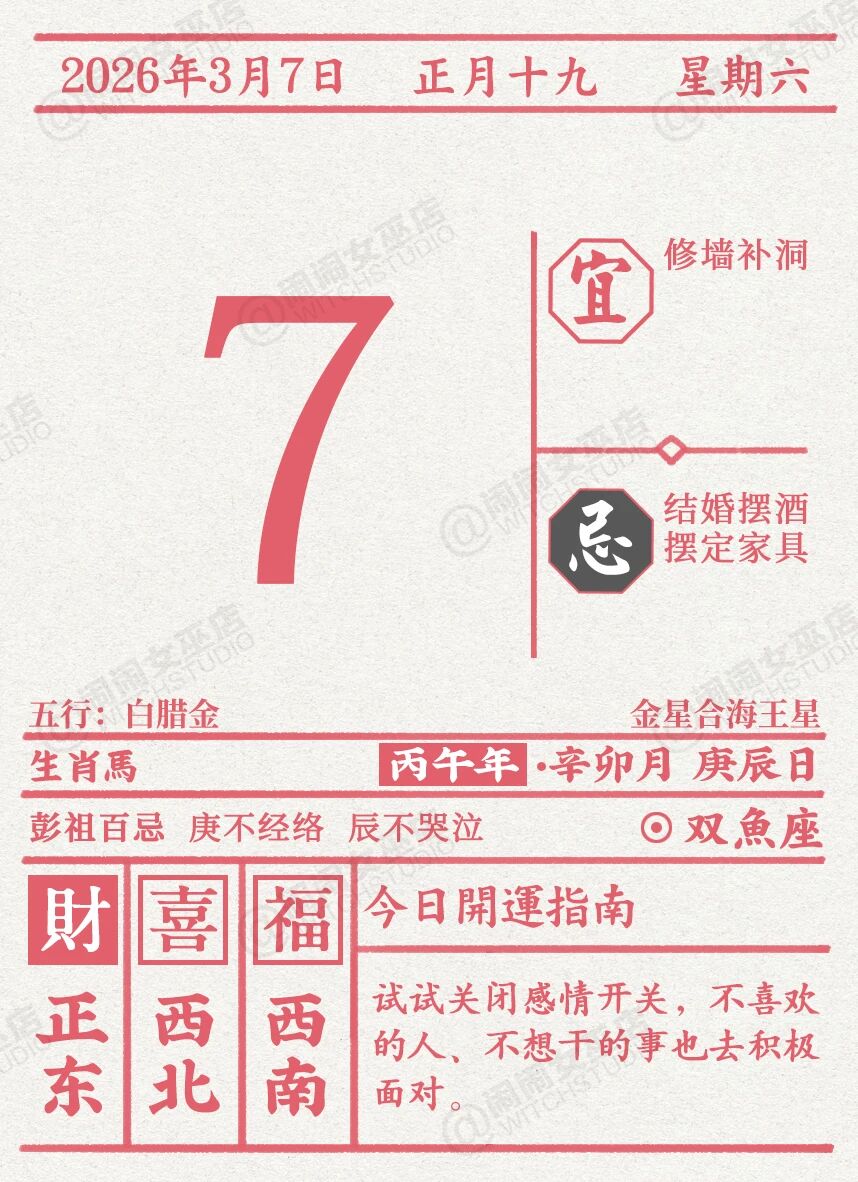 今天的你很有主见,你也希望周围的人能够听你的话。你对生活有不少独特的见解,并且你相信这些意见会改善大家的生活,所以你希望大家能按照你的建议来做事。今天的你也是圈子中不错的商讨对象。