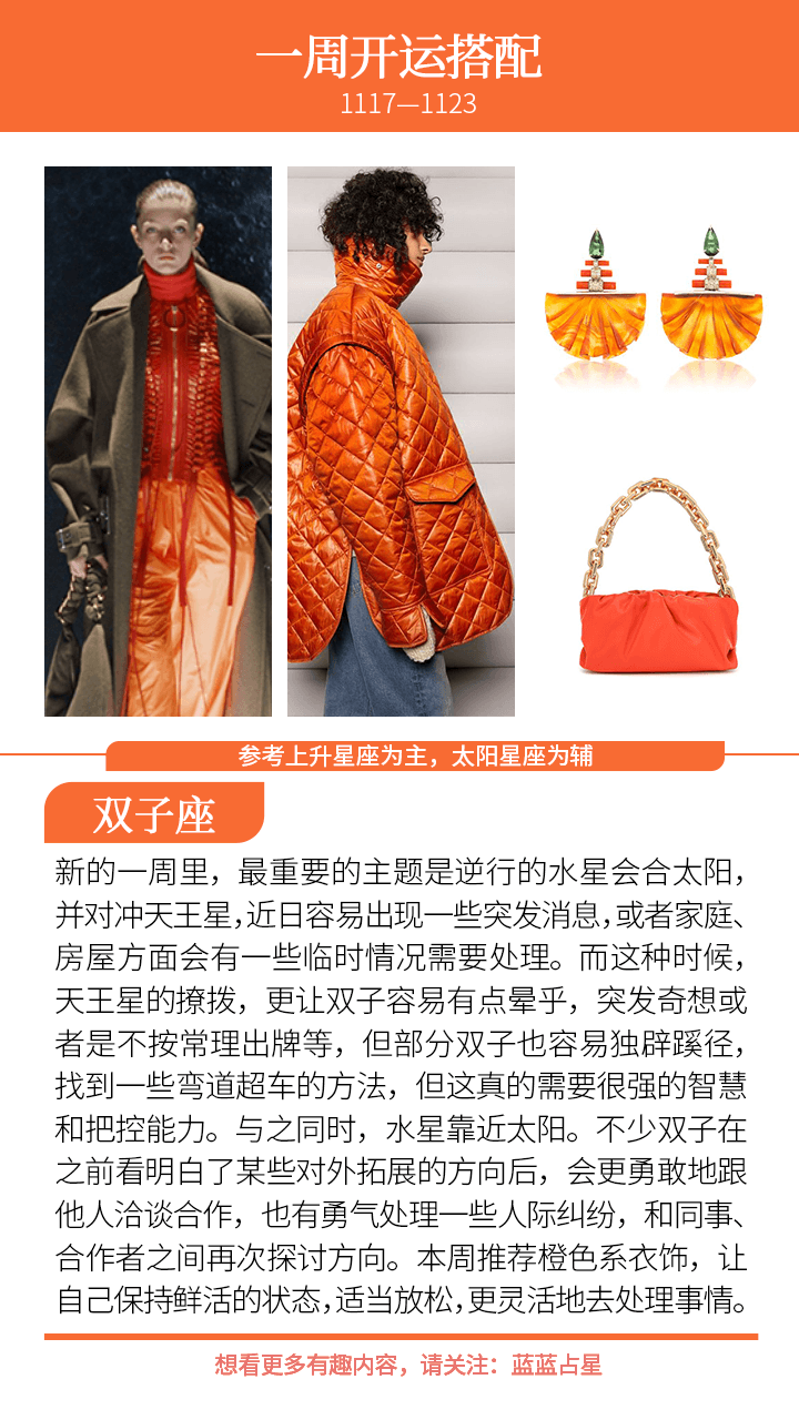 但要注意,水星逆行到天蝎座末端和天王星打了起来,出现很多突发的交通或约定更改、文书出错、沟通有误,不少临时或者突发的事情都会发生,宽心些就好。提醒(上升星座或太阳星座)处女、双子注意健康,容易有一些突发状况或者健康问题,让你感觉有点身心不稳。