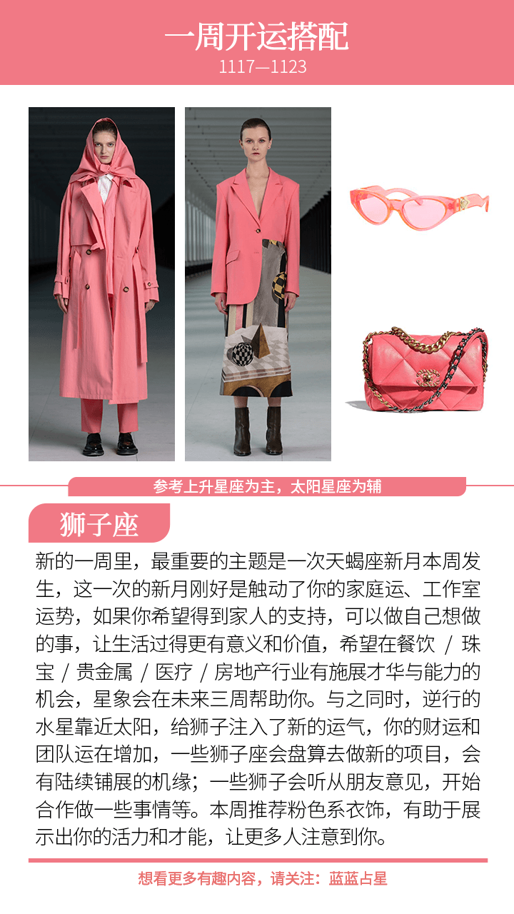 此外,逆行的水星逐步靠近太阳,我们会感觉最近多了一些倾诉的欲望,对于不少最近发生的事情,都有了新的感慨,也会想起很多之前的人和事情,不妨找人聊天来抒发一下内心情怀,可以有效减轻近日的压力。而(上升星座或太阳星座)射手、狮子、天蝎会得到额外的运气,其中公司或团队的事情让你更为关注,但挑战之后也带来新的开拓机缘,这段时间不要太关注个人情绪的起伏就好。