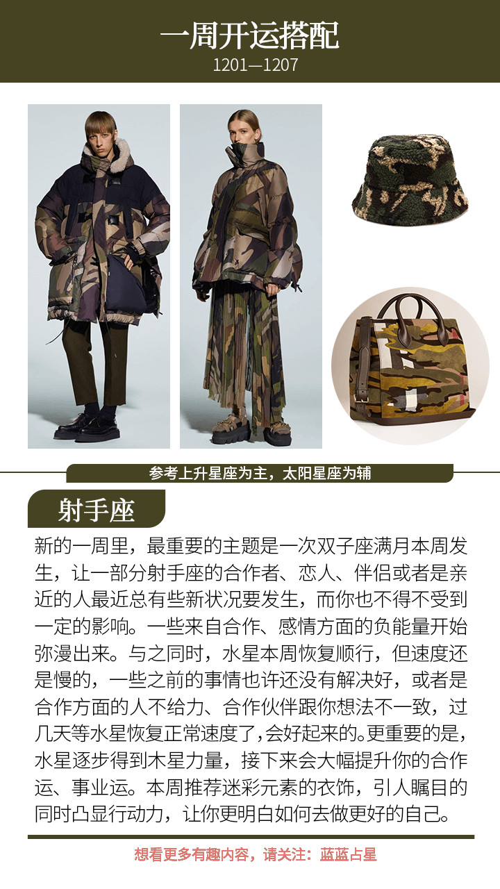 此外,进入新的一周,金星会进入射手座,离开落陷状态,叠加12月中的金星会合火星,未来几周带给不少人对于未来感情的乐观感,或者是渴求某些桃花机缘。