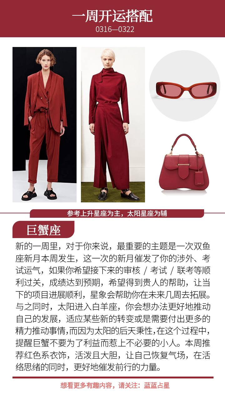 ——对外拓展或者家庭领域方面出现强势运势,虽然有某些压力存在,焦虑也会偶尔出现,但你会逐步掌握强者思维。